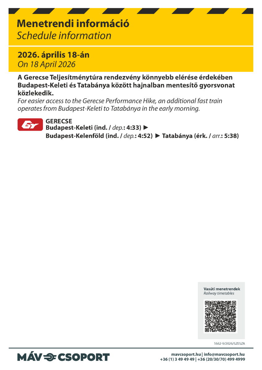Nem várt körülmény esetére a tartalék időpont:2026.04.30. csütörtök 19:00 órától - 2026.05.01. péntek 5:00 óráig