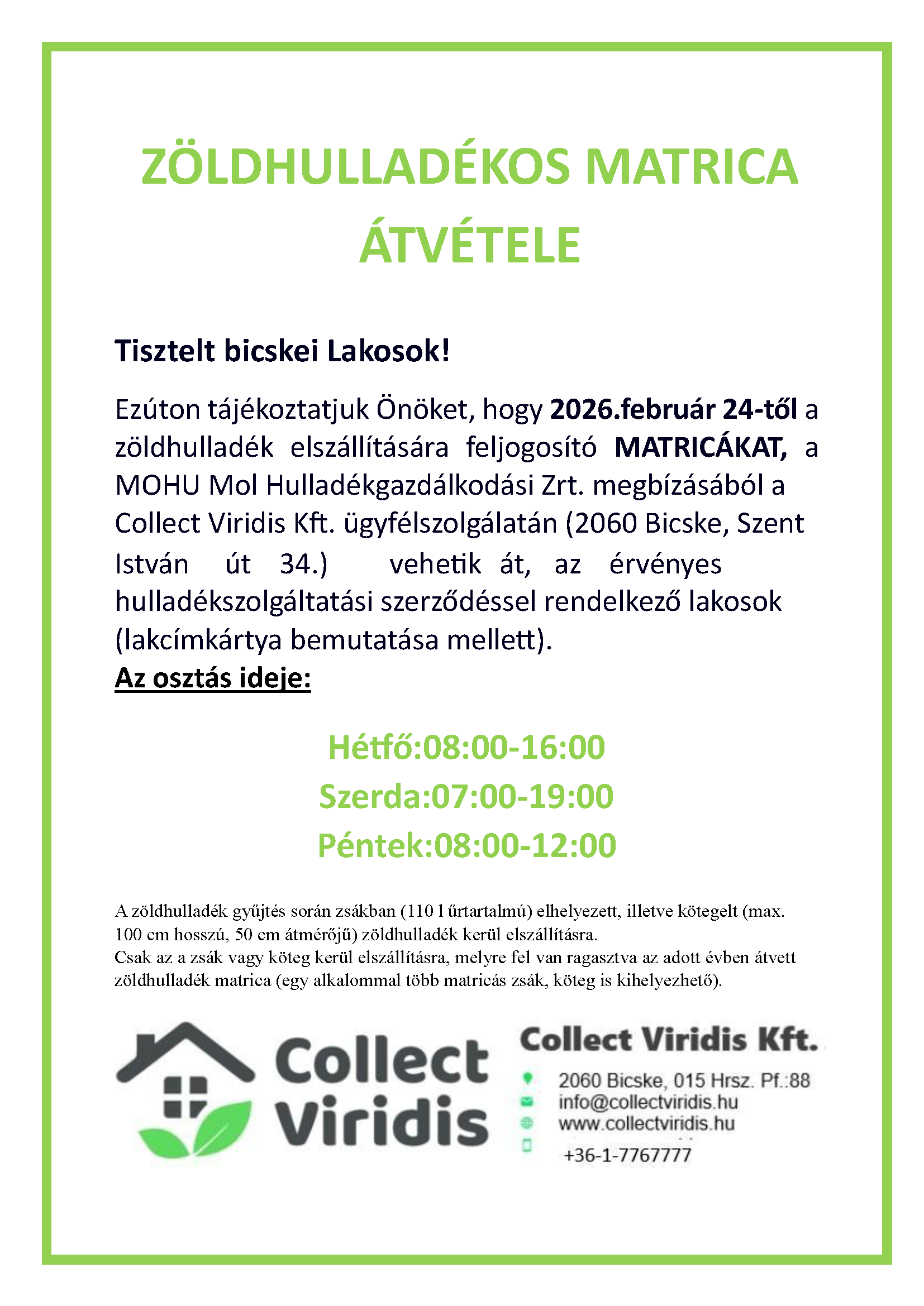 Zöldhulladék matrica átvétele