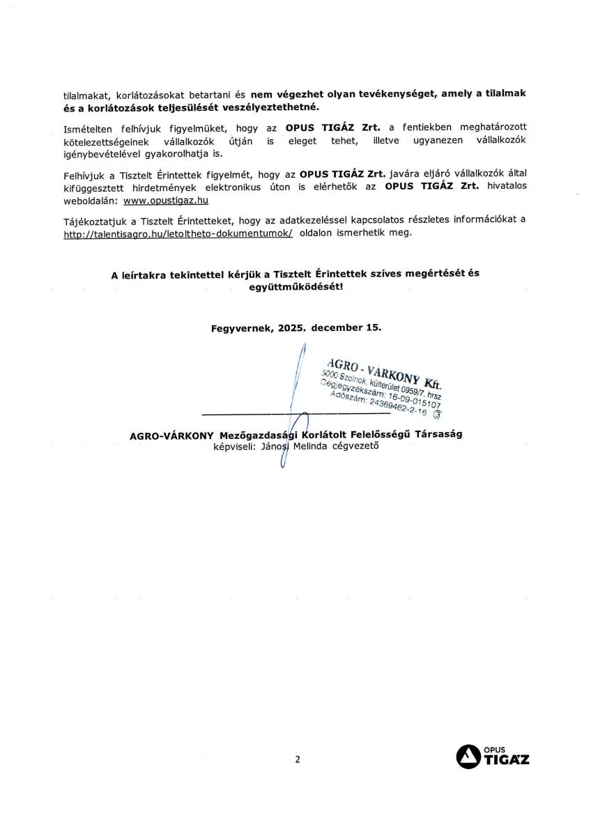 Az AGRO-VÁRKONY KFT. gyommentesítési és nyomvonaltisztítási munkálatokat végez 2025.11.01 - 2026.04.30 között