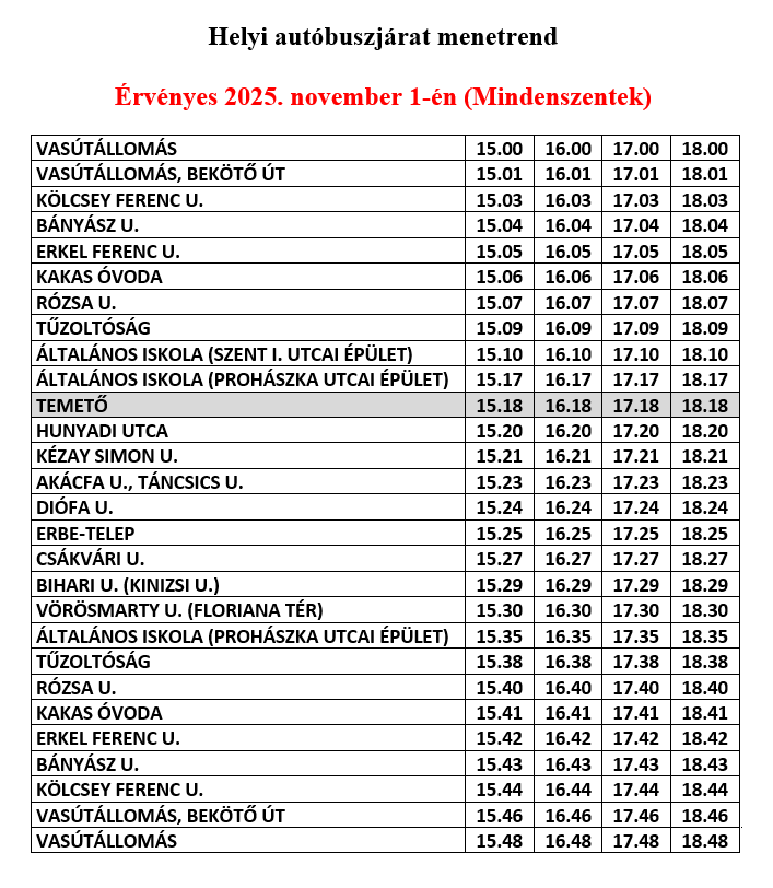 Helyi autóbuszjárat menetrend - Érvényes 2025. november 1-én
